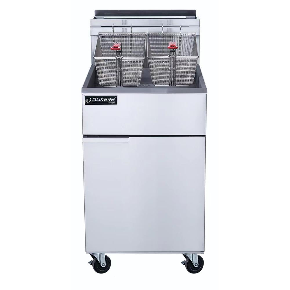 The Dukers DCF5-NG Natural Gas Fryer with 5 Tube Burners is a powerful and efficient frying solution designed for commercial kitchens. Featuring five tube-style burners, each delivering 30,000 BTU/H for a combined output of 150,000 BTU/H, it ensures rapid and consistent heat distribution. Operating on Natural Gas (NG) with a gas pressure of 4" WC, it provides reliable performance. With a spacious work area measuring 19.49" x 13.98" and a nozzle size of 39#, it accommodates various frying needs. Equipped with a durable temperature probe and Millivolt safety control system, it ensures precise temperature control and enhanced safety. Its design facilitates easy cleaning, allowing every inch of the frypot and cold zone to be cleaned manually, while the large cold zone and forward-sloping bottom effectively collect and remove sediment to maintain oil quality. Backed by a 1-year parts and labor warranty, along with a 5-year warranty on the oil tank, this fryer guarantees durability and reliability for commercial kitchen operations.